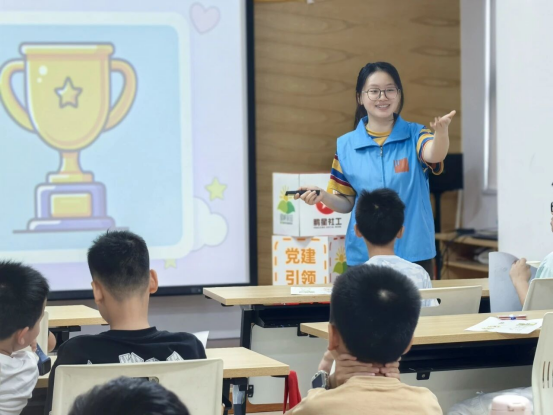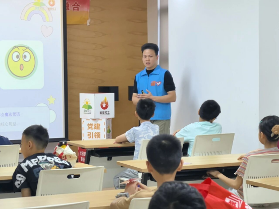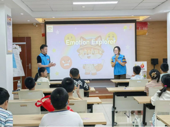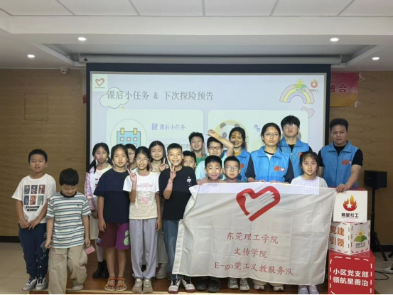 2026年4月18日上午,春光明媚,外语系员工党支部2026年春季第三期“E-go英语义教进社区”志愿服务活动,在东莞市星城社区党群服务中心如期开展,并圆满落幕。本次活动以“Emotion Explorer”为主题,由两位义教老师23商务英语的李言彤老师和23英语的邓辉豪老师以及两位志愿者25英语1班黎俊杰和25汉语1班郭诗妍共同参与,为社区的小朋友们带来了一堂生动有趣、温暖人心的英语课堂。