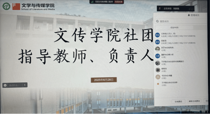 随后,团委副书记王思琦围绕“社团组织活动全流程规范”展开详细讲解,结合线上活动特点与实际案例,将流程拆解为“事前审批、事中执行、事后总结”三个关键阶段。在事前审批环节,她明确需提交的材料清单,包括活动方案(需注明活动主题、参与对象、流程安排、思政融入点)、嘉宾信息表(校外嘉宾需提前3个工作日报备并附背景审核材料)、经费预算表(需标注资金来源与明细用途),并演示线上审批系统操作步骤,提醒各负责人需在活动开展前5个工作日完成提交,避免因材料不全延误审批;在事中执行环节,针对线上活动特殊性,她强调需安排专人负责直播设备调试、互动留言监控、突发情况应对,若活动涉及视频播放、文件分享,需提前审核内容是否符合意识形态要求,严禁出现不当言论或违规信息;在事后总结环节,要求各社团在活动结束后3个工作日内提交总结报告(含活动成效、参与反馈、改进方向)、活动照片或视频素材,同时做好经费使用结算,确保每一笔支出都有据可查。此外,王思琦还针对常见问题进行答疑,如“跨校联合活动如何走审批流程”“线上讲座嘉宾资质审核标准”等,帮助指导教师与社团负责人进一步明晰操作规范。