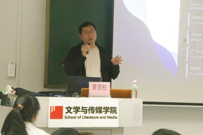 2025年11月10日下午,太阳城娱乐于综合教学楼6D405举办了青蓝讲坛2025年第3期——法国电影LA FEMIS与法国电影生态观察。毕业于法国国立电影公司LA FEMIS导演系,电影导演黄若松作为主讲人出席。同学们踊跃参加,到场观摩学习。