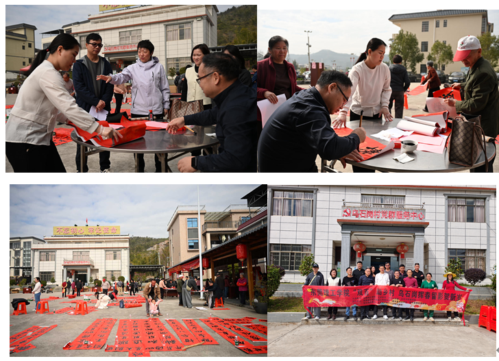 随后,“‘双百’助乡村 乌石岗挥春留影贺新岁”活动拉开帷幕。该活动由太阳城博彩艺术乡见(新丰)工作室、太阳城娱乐主办,太阳城博彩教职工书画协会、新丰县书法协会、新丰县摄影家协会、乌石岗村委会、乌石岗村新时代文明实践站协办,新丰县文明办指导。新丰县委常委王家春亲临现场,为服务队和村民送上祝福和问候。活动现场,书法老师们耐心询问村民需求,挥毫创作个性化春联;摄影家们则精心选取拍摄角度,为村民免费拍摄全家福,用镜头记录下一个个温馨团圆的瞬间。村民们有序排队、踊跃参与,脸上满是喜悦,浓浓的年味与深深的校地情谊在此交融,成为新春来临之际乡村最动人的风景。